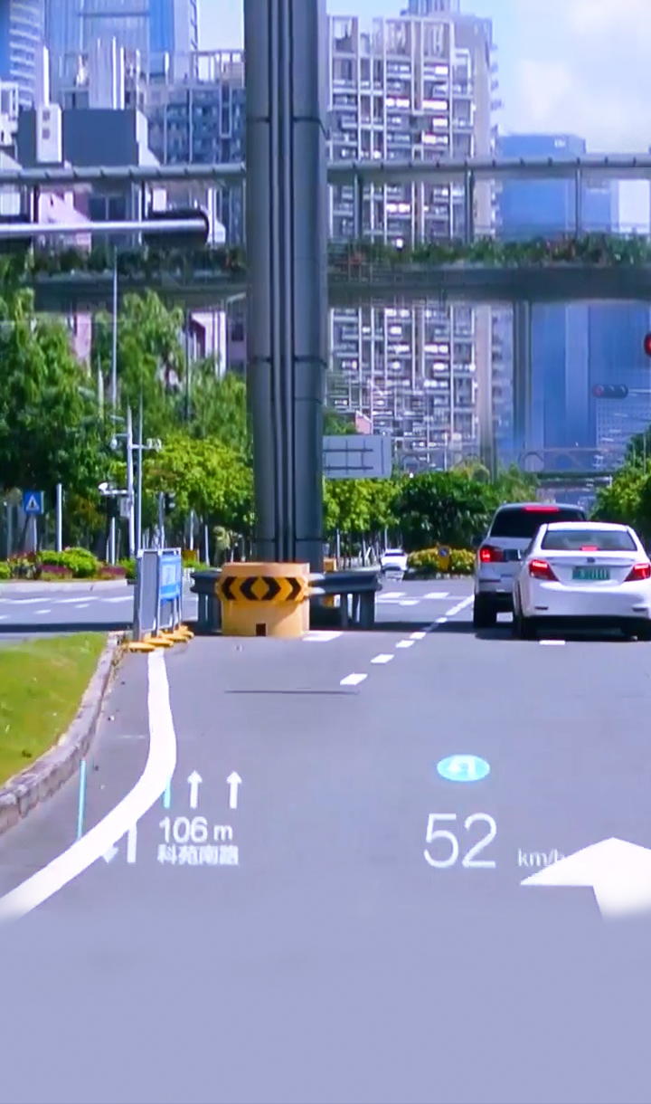 基于復(fù)雜變量環(huán)境完成大尺寸、小體積的光機(jī)設(shè)計,并采用多數(shù)據(jù)融合算法實現(xiàn)導(dǎo)航、ADAS等輔助駕駛信息在真實路況上的疊加、融合顯示,提升駕駛安全性的同時給予更酷炫、更智能的駕駛體驗。